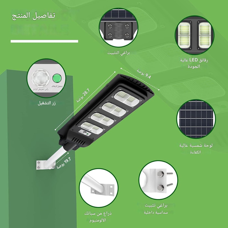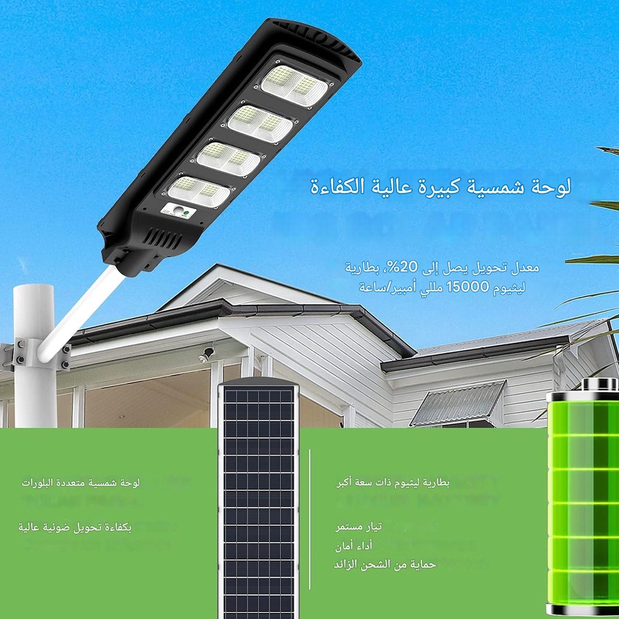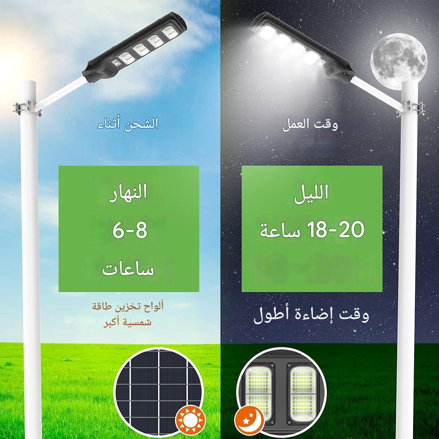 بروجكتور بالطاقة الشمسية 600 واط – إضاءة قوية 3 بطاريات LiFePO₄ إضاءة ليلية بلا فواتير