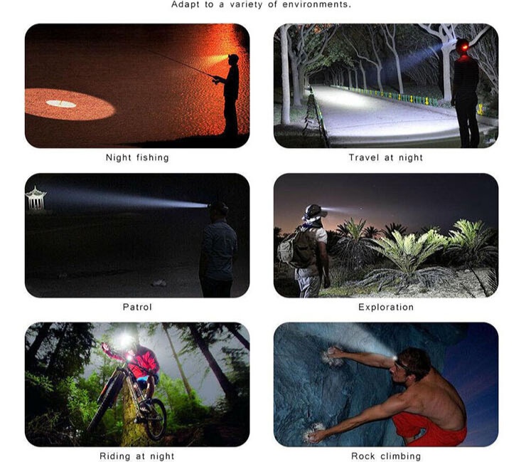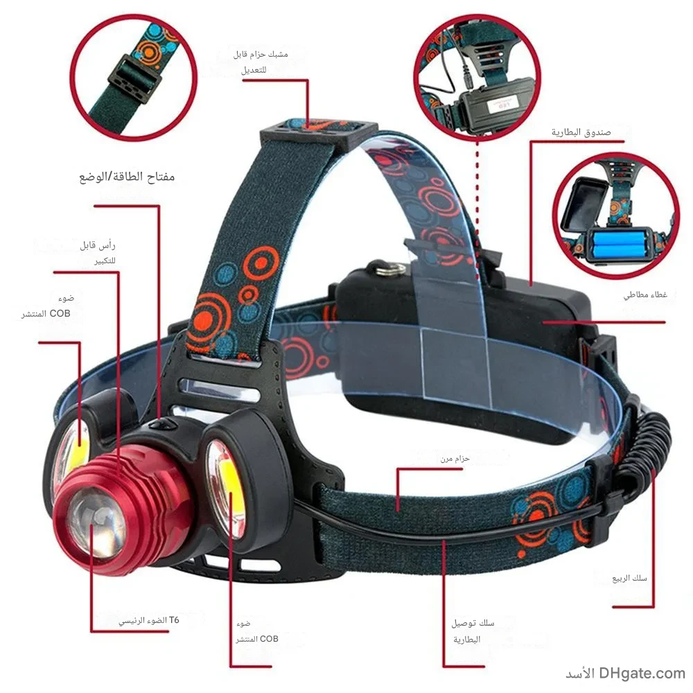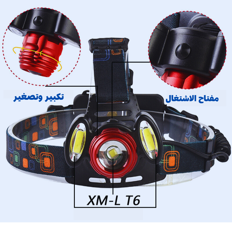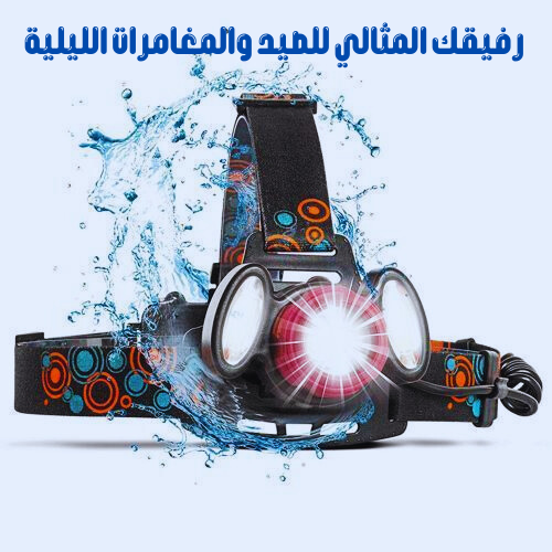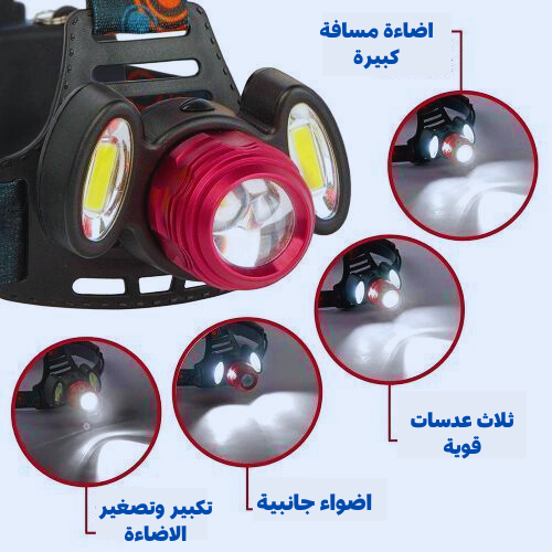 مصباح LED رأس بثلاث عدسات اضاءة zoom وبطاريتين ليثيوم تدوم لأكثر من 18 ساعة! مثالي للصيد والمغامرات الليلية