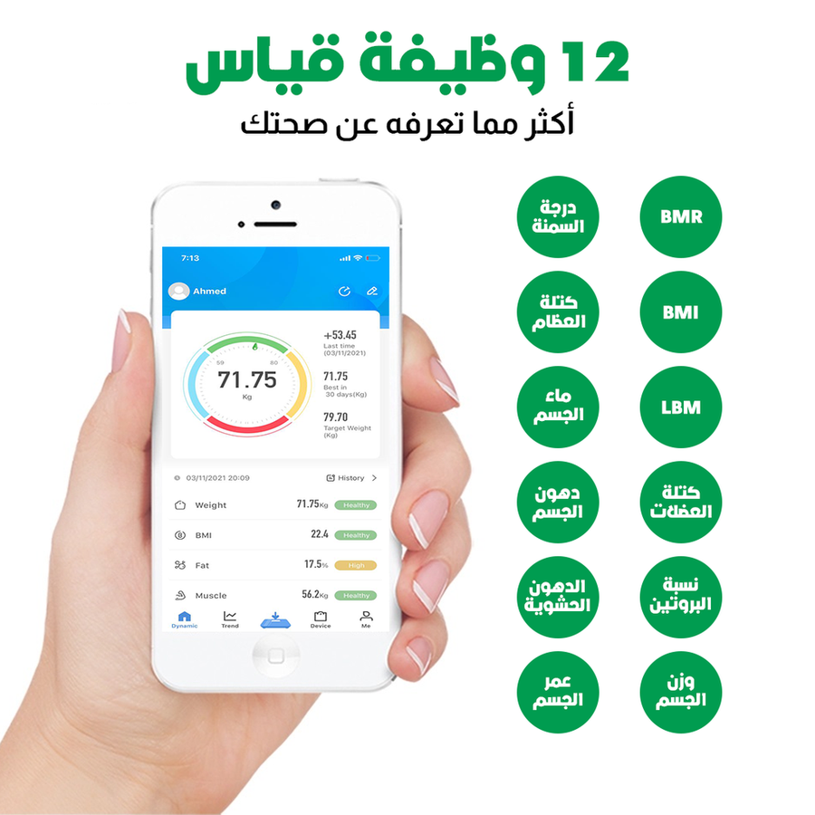 ميزان ديجيتال InBody جهاز متطور لقياس وتحليل مكونات الجسم بدقة عالية. يتميز هذا الميزان بالاتصال بتقنية البلوتوث،