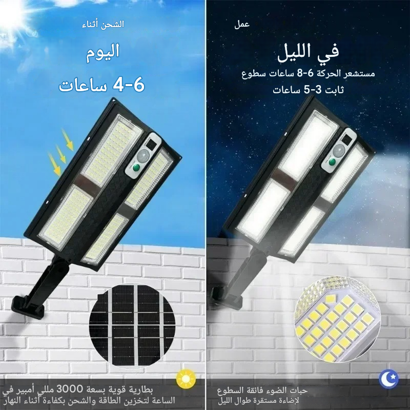 ☀️ يشحن نهاراً من ضوء الشمس، ويضيء ليلاً بذكاء.